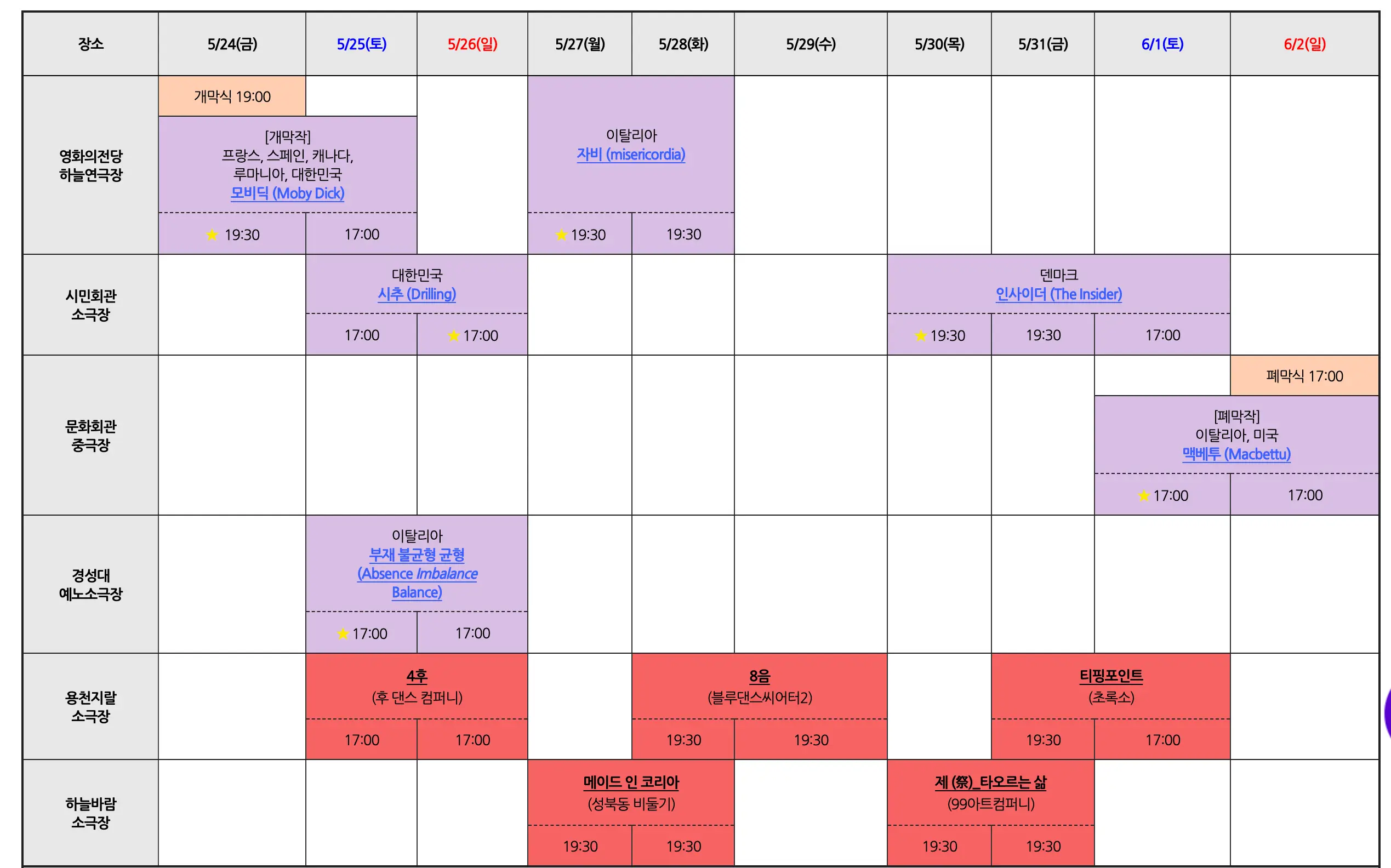 개막작 폐막작 외 자세한 공연일정은 위에 표를 참고하시면 됩니다